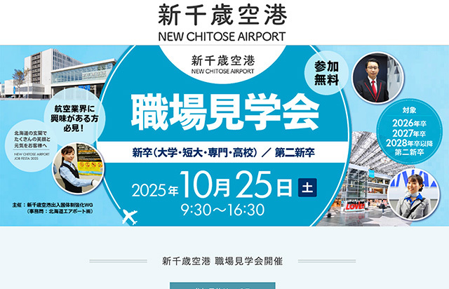 2. 新千歳空港、職場見学会10/25開催 新卒・第2新卒対象