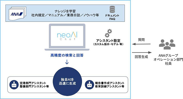 全日本空輸は10月16日、neoAI(東京・千代田区)が開発した生成AI(人工知能)プラットフォーム「neoAI Chat」を、グループの航空機オペレーション部門へ本格導入したと発表した。規程やマニュアルの検索時間の短縮に加え、報告書や教育資料などの作成時間の削減にもつながるもので、業務特化型の生成AIを各社・各部門に横断的に展開することで、オペレーション品質の向上を図る。「neoAI Chat」はANAが管理する自社クラウド基盤上で運用し、社内に存在する膨大な文書をAIが横断的に解析する。ANAグループの空港、整備、客室、運航など航空機オペレーションに関わる各社・各部門へ本格導入し、社員は必要な情報と根拠となる文書を対話形式で取得できる。AIの導入により、規程や過去の議事録など情報検索時間を90%程度短縮できるほか、報告書や規定、教育資料など定型文書作成も効率化でき、作成時間を75%程度削減できるという。航空機オペレーションの現場は業務が複雑化しており、業務への対応には膨大な規程の中から求める情報を迅速・正確に引き出す必要がある。情報検索はこれまで個人の経験値に依存しており、時間がかかることが課題だったという。ANAは2024年8月から、neoAI Chatを成田空港で試験導入。航空機オペレーション業務の省力化と的確な判断支援への有効性が認められたことから、今回の本格導入に至ったと説明している。【Aviation wire news】