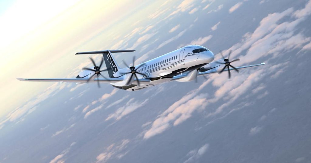 【Evio社提供:開発中の電動ハイブリッド航空機Evio 810型機(想像図)】